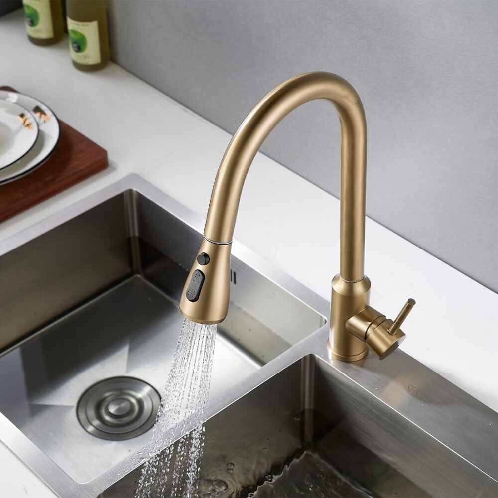 Kitchen Faucet Gold Kitchen Faucet, Kitchen Faucet with Pull Down Sprayer, 304 Stainless Steel Kitchen Faucet