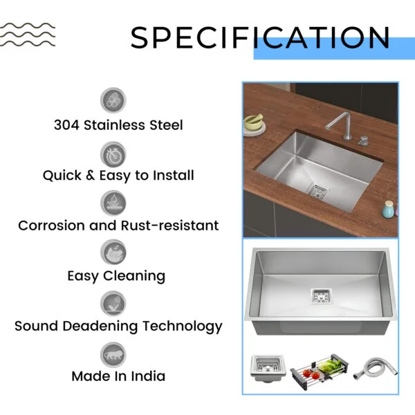 - Single Bowl Design:Â Offers ample space for washing dishes, prepping ingredients, and completing various kitchen tasks efficiently.