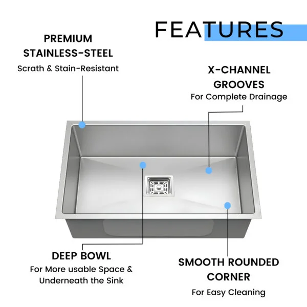 - Single Bowl Design:Â Offers ample space for washing dishes, prepping ingredients, and completing various kitchen tasks efficiently.