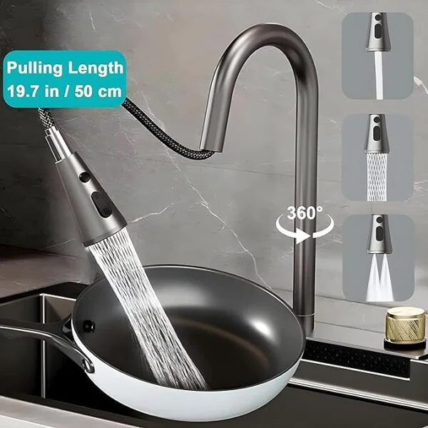 - Single Rotating Knob : It is easy to control water temperature & water volume, and switch water flow style by rotating A knob (Left to Pull Down / Right to Waterfall Faucet).