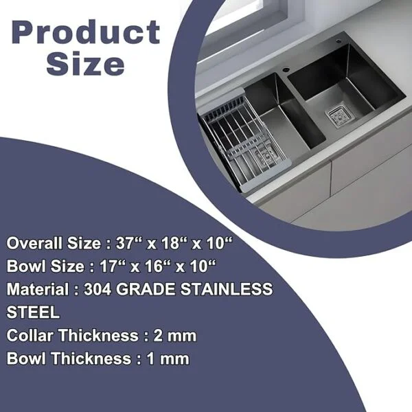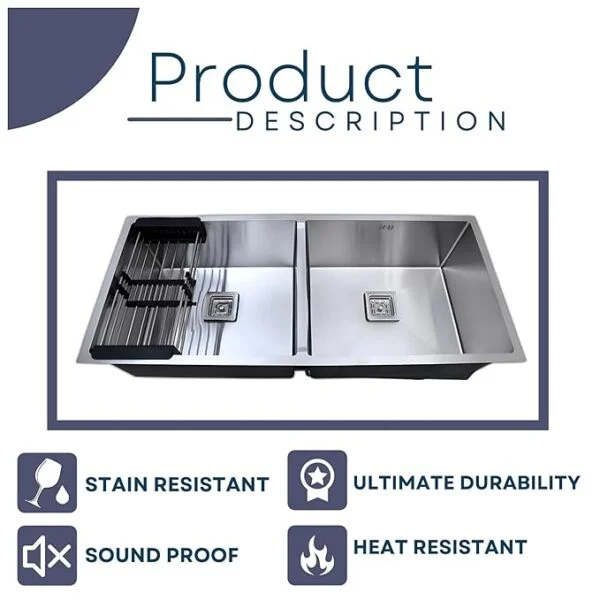 - Double Bowl Design: Offers ample space for washing dishes, prepping ingredients, and completing various kitchen tasks efficiently.