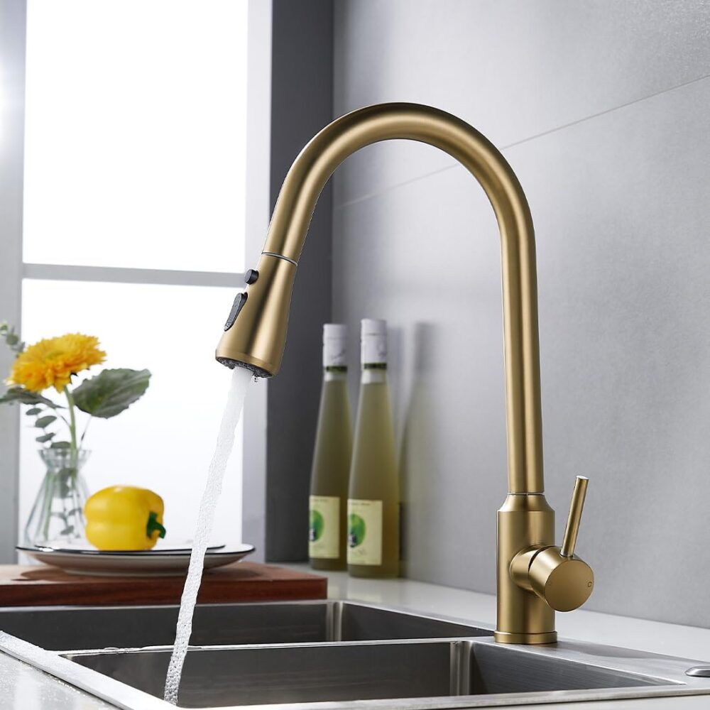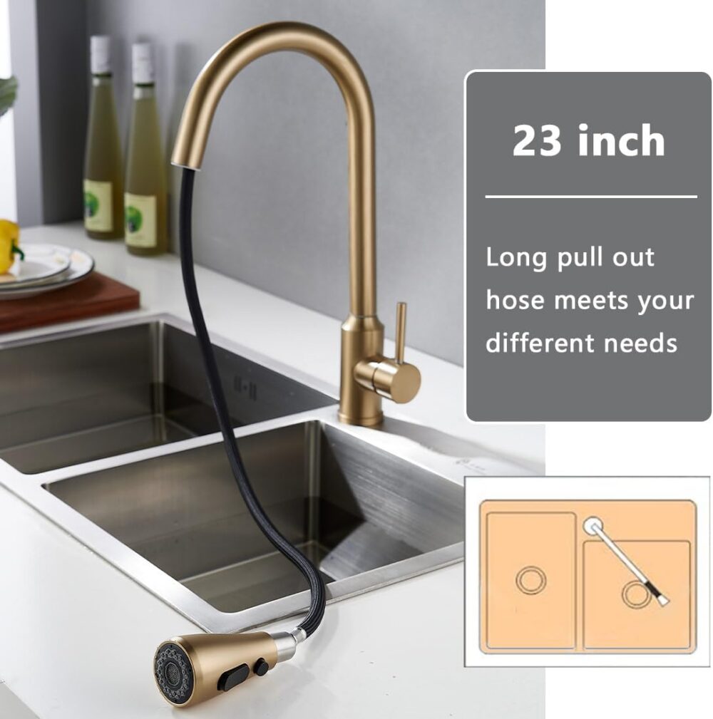 - Â Gold Kitchen Faucet water mode: Multifunctional Outlet Water Effect: 3 way spray setting(STREAM,SPRAY,PAUSE),stream for filling water, spray for rinsing, pause for avoiding splashing in multitask mode.