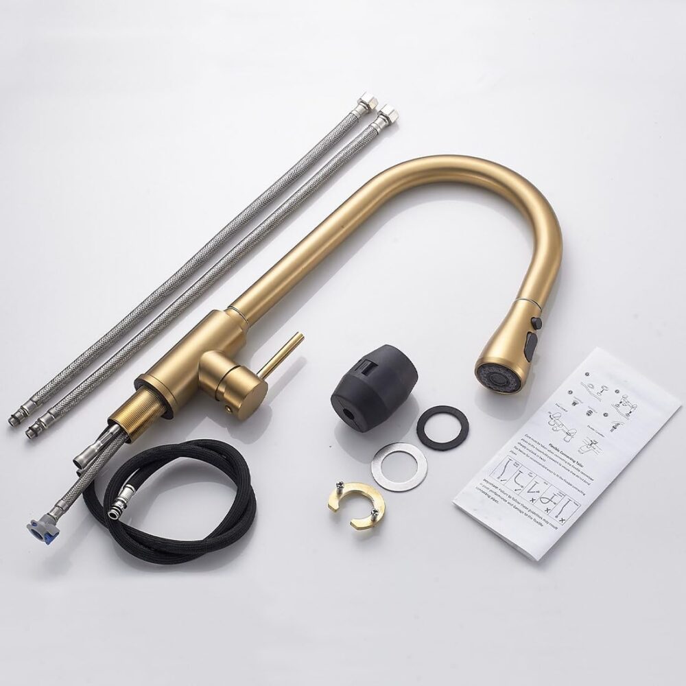 - Kitchen Faucet material: Solid Brass material, healthier, safe and durable. High-arch gooseneck spout and swivels 360 Degree for complete sink access.