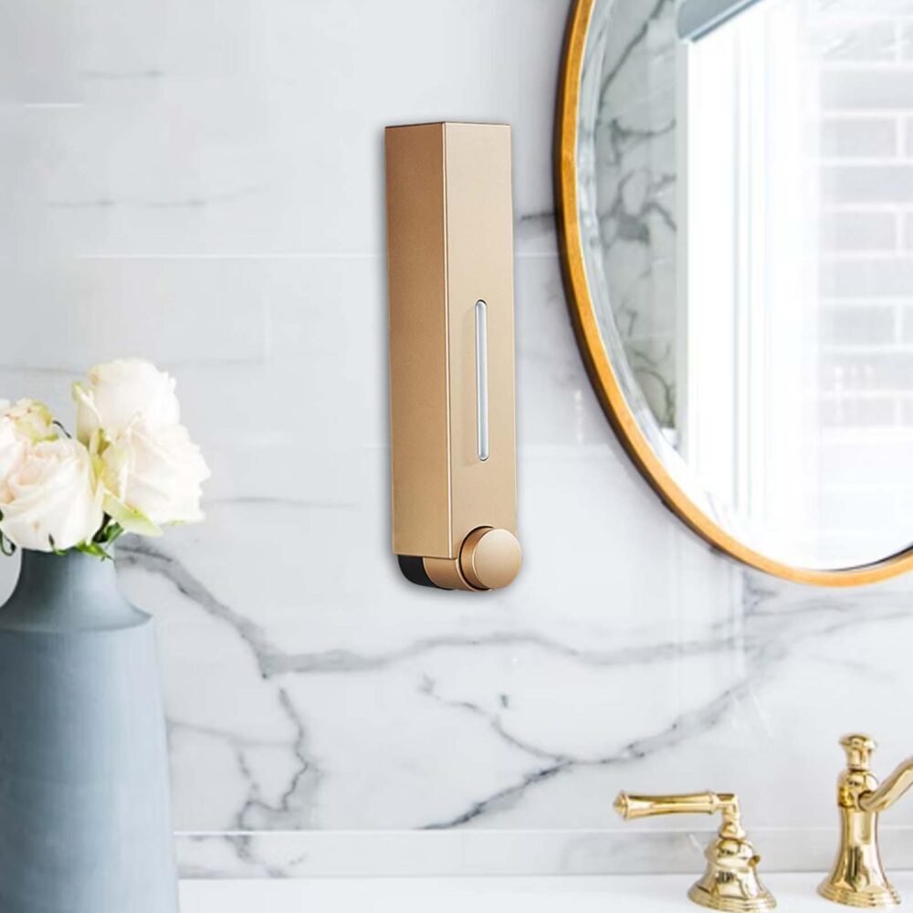 • 【Easy to Refill】Manual operated bathroom soap dispenser is reusable and refillable, with the elegant champagne gold color. With a visible window, you can easily see how much liquid is left in the dispenser and refill it in time
