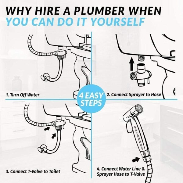 - No professional plumber is needed. This Bidet handheld shower kit can be installed in about 10 minutes. Whenever cleaning is required, the shower head is always comfortable for you.