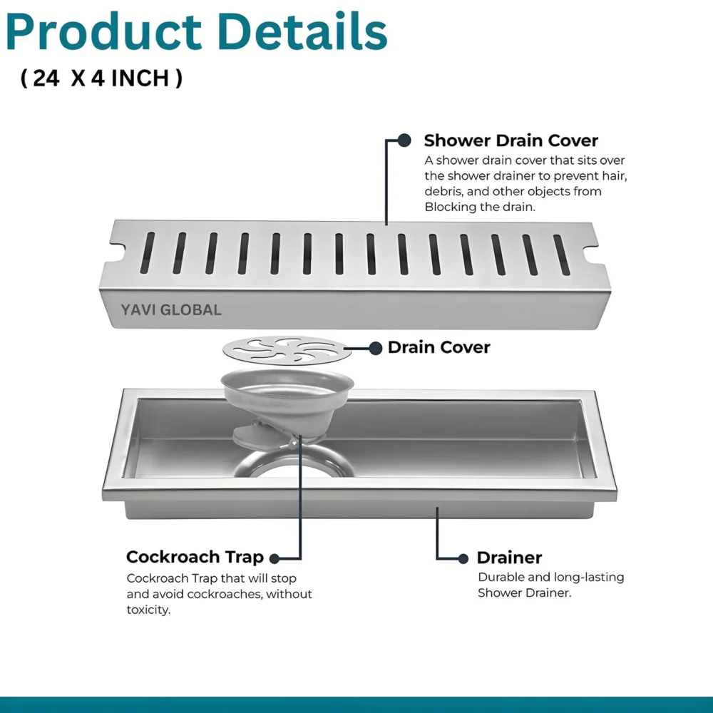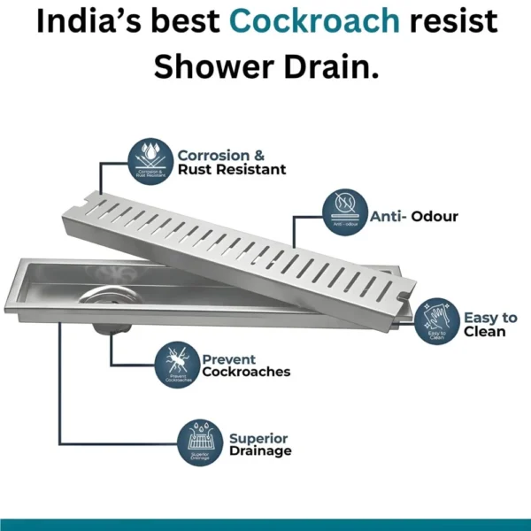 • Shower drain channels are manufactured in high-quality 1mm Thick AISI 304-Grade Stainless Steel with 18% Chromium and 8% Nickle content that actively resists rusting for a long time.